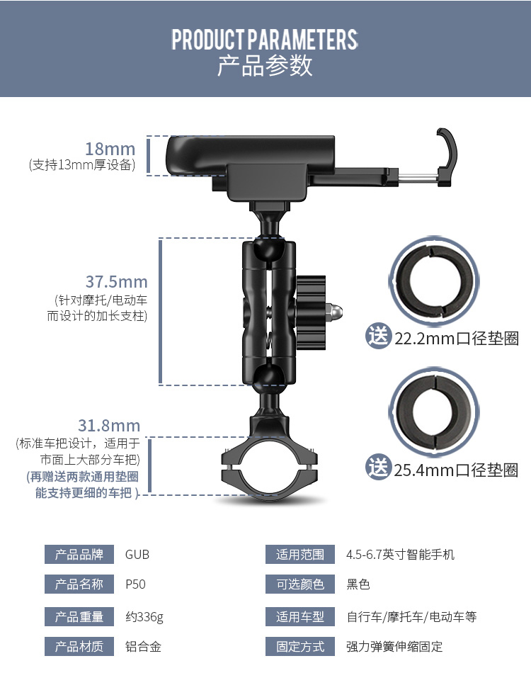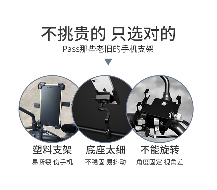特點:鋁合金架體,高兼容性不挑手機型號,摩托車、電動車等都可使用,四面環(huán)繞固定,夾手機更牢固,快速取放省時省力,雙萬向球旋轉(zhuǎn)系統(tǒng),滿足多場景使用需求。