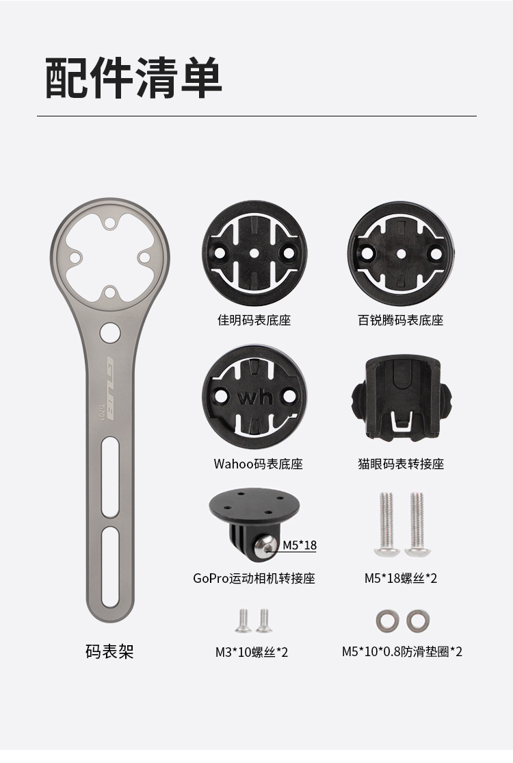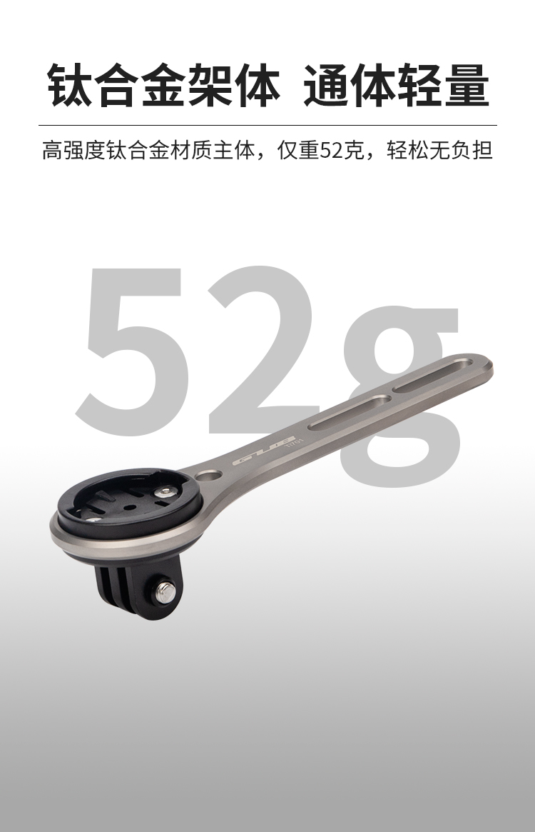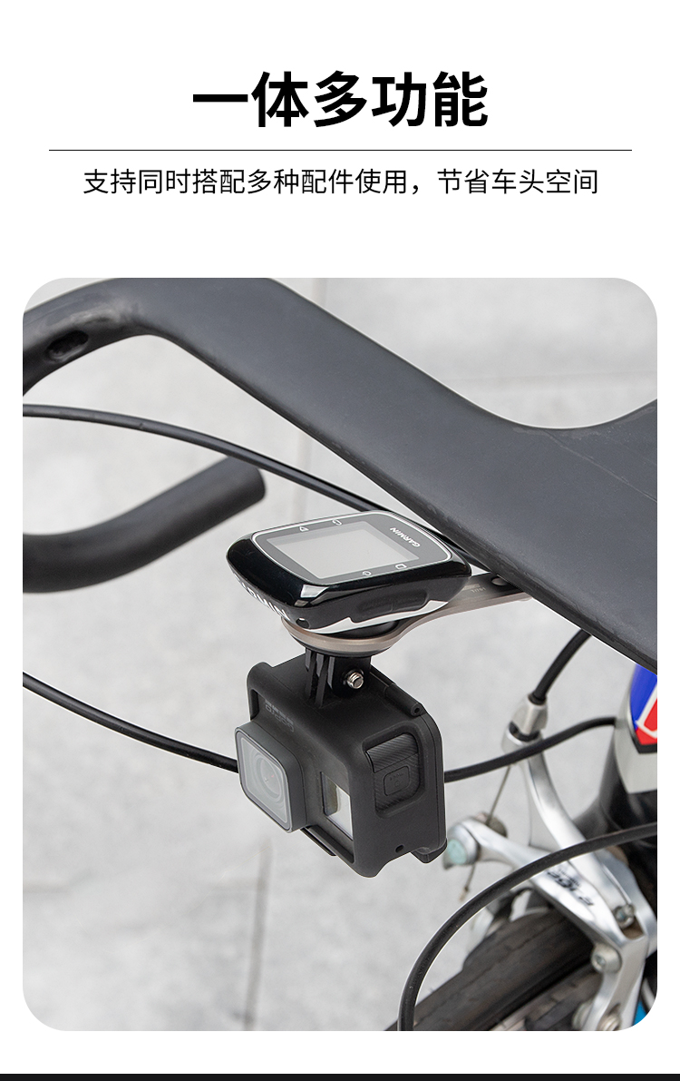 特點:鈦合金架體,居中安裝節(jié)省空間(一體把專用),兼容多種碼表,標配運動相機接座,可擴展使用運動相機等配件