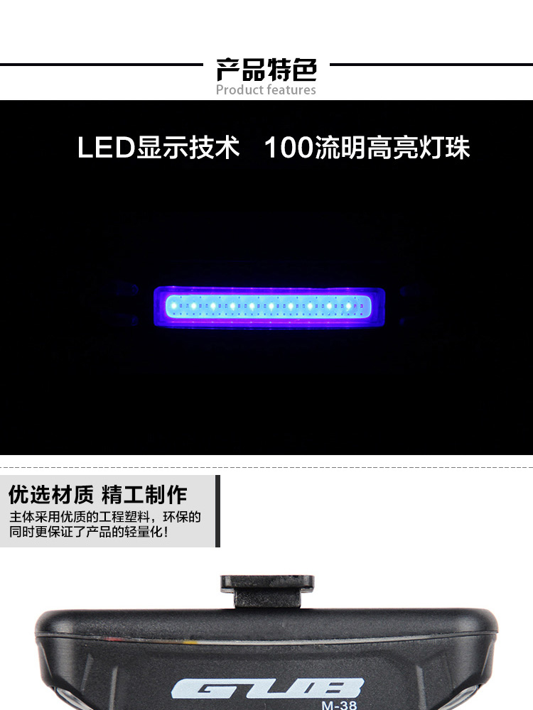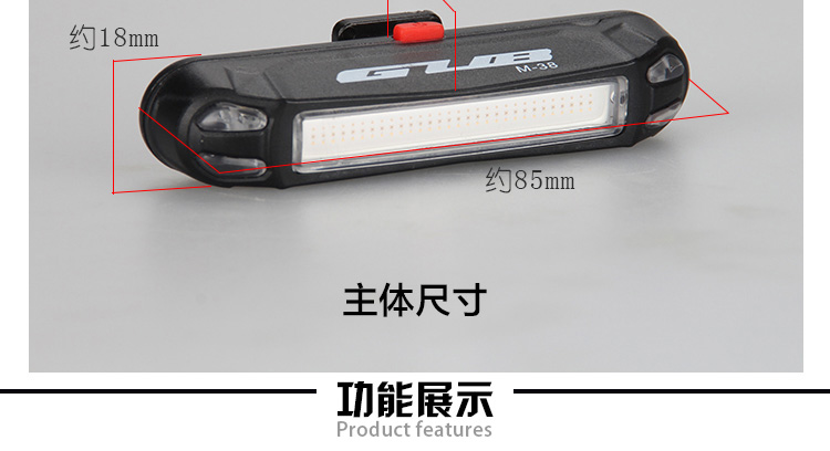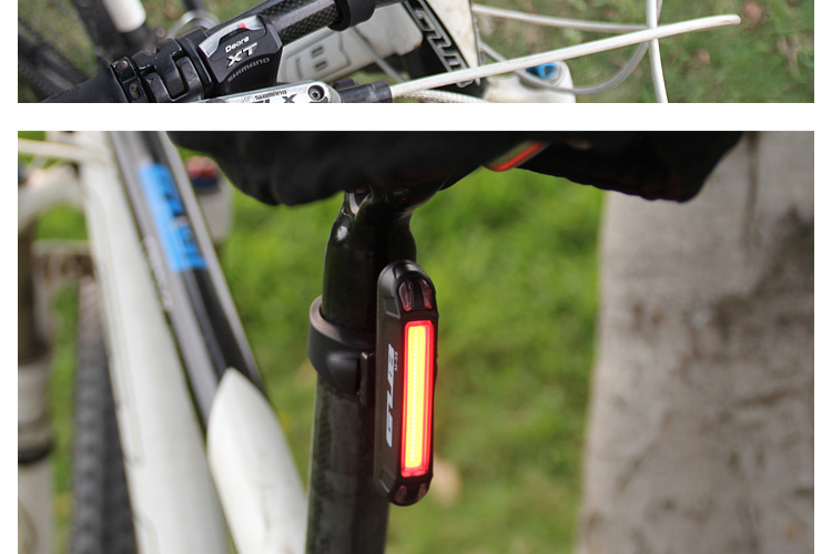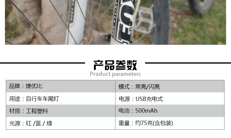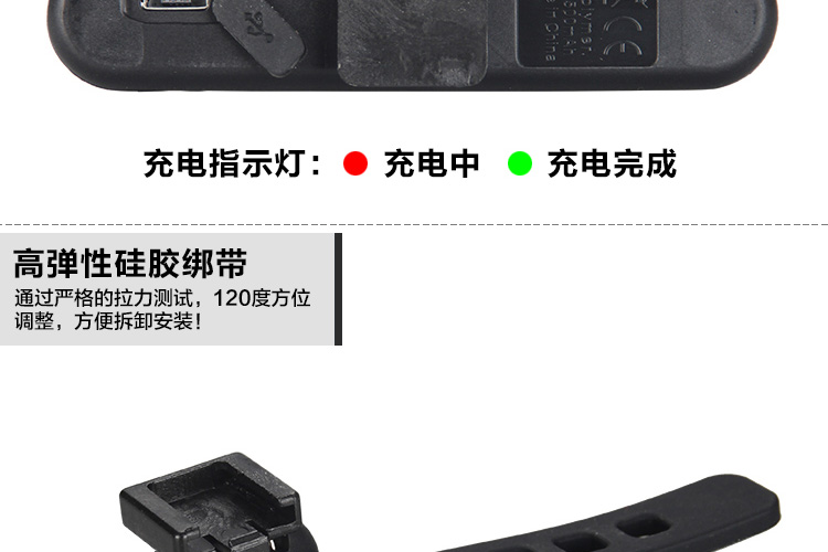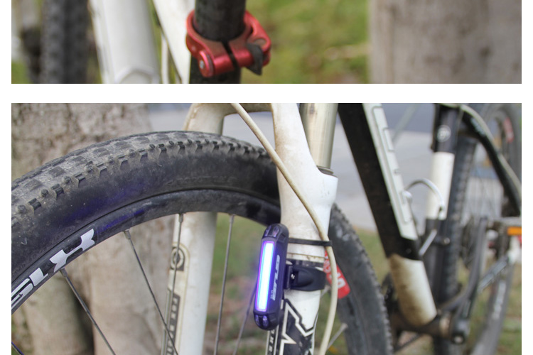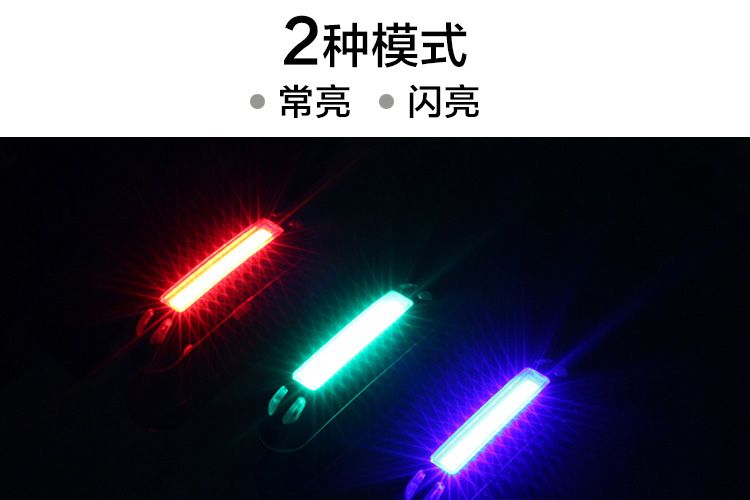 特性:LED技術(shù),COB整面發(fā)光,高亮100流明設(shè)計(jì),實(shí)現(xiàn)整體流暢設(shè)計(jì);配備USB接口,可循環(huán)充電;2種模式7種效果可循環(huán)切換;電池自動(dòng)保護(hù)功能,電壓低于2.8V不工作;硅膠捆扎固定方式,120度方位調(diào)整,方便拆卸安裝;方型背扣設(shè)計(jì),可橫向和縱向不同角度安裝;可安裝在坐管,下叉,車把手,前叉等。