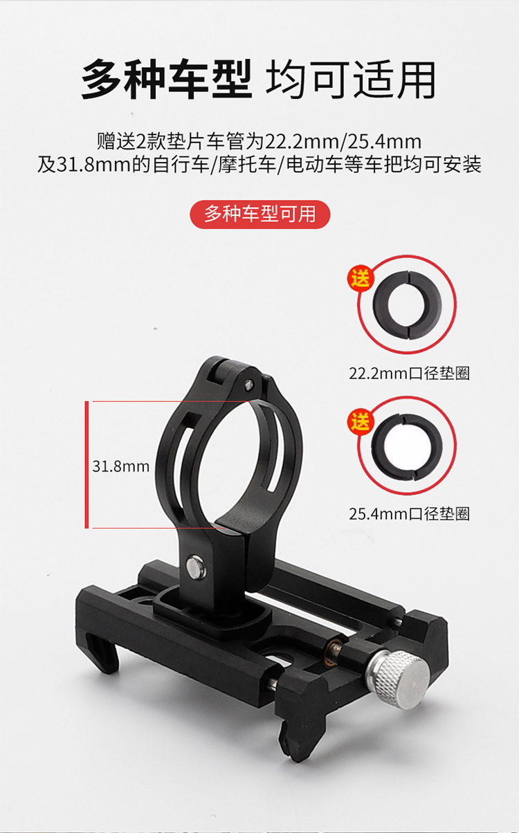 尺寸:長(zhǎng)65mm(可調(diào)至100mm),寬50mm,夾子口徑Φ31.8mm