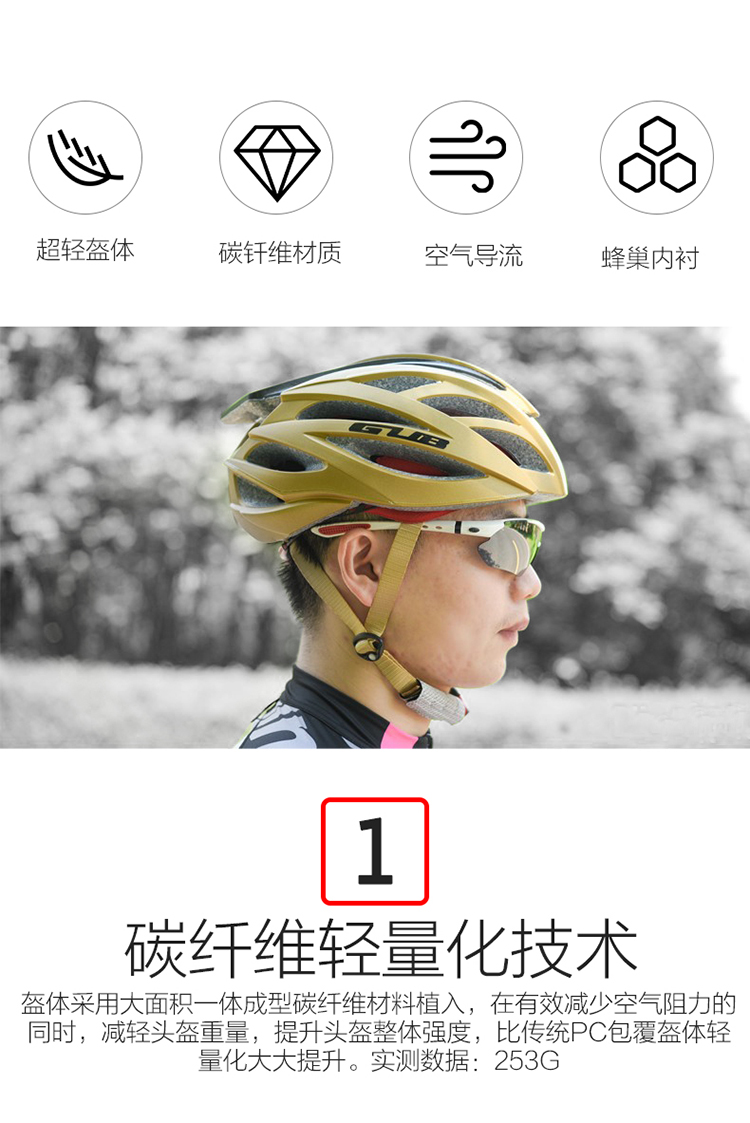 材質:帽殼(PC)帽體(EPS)+碳纖維尾翼