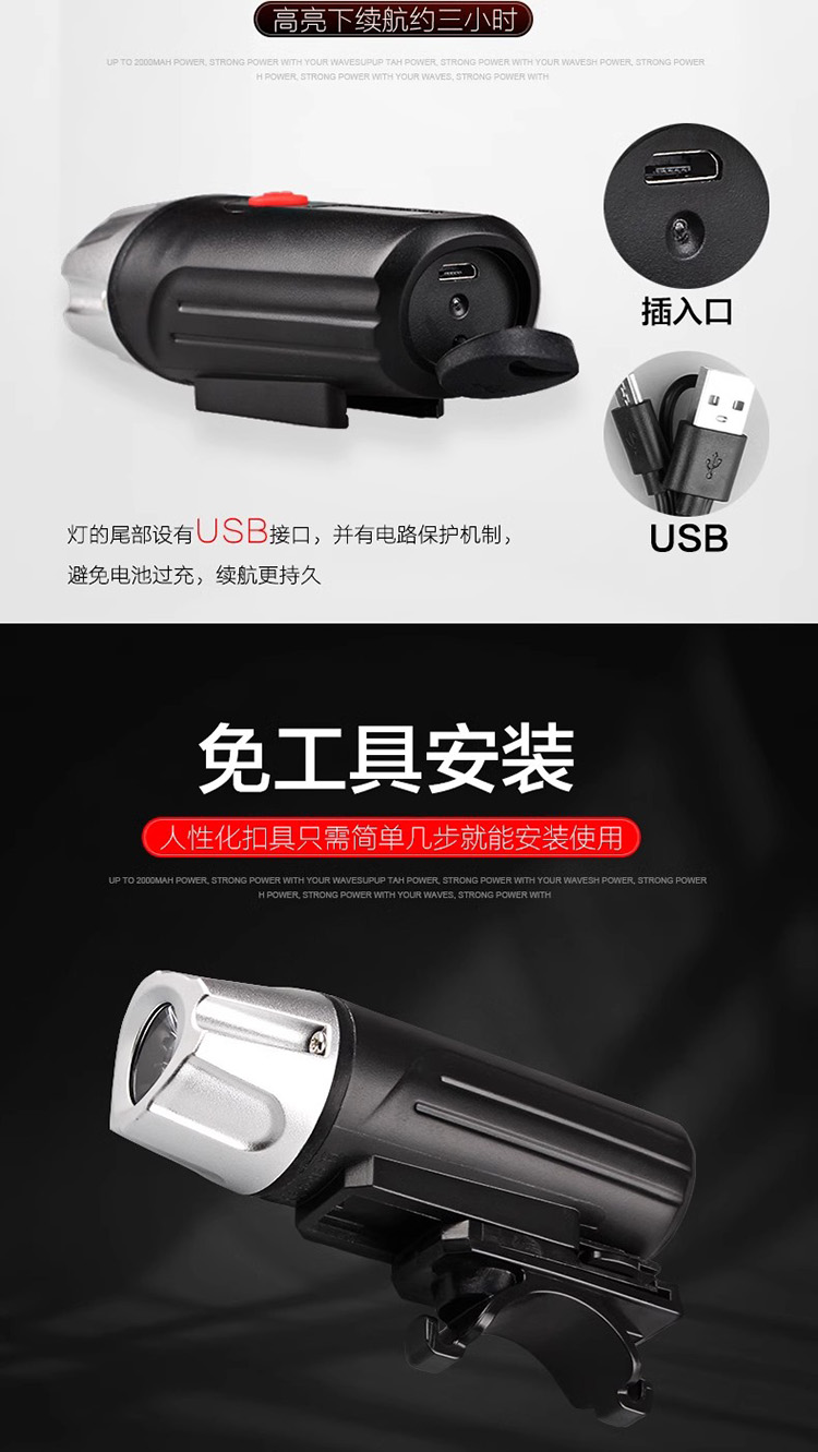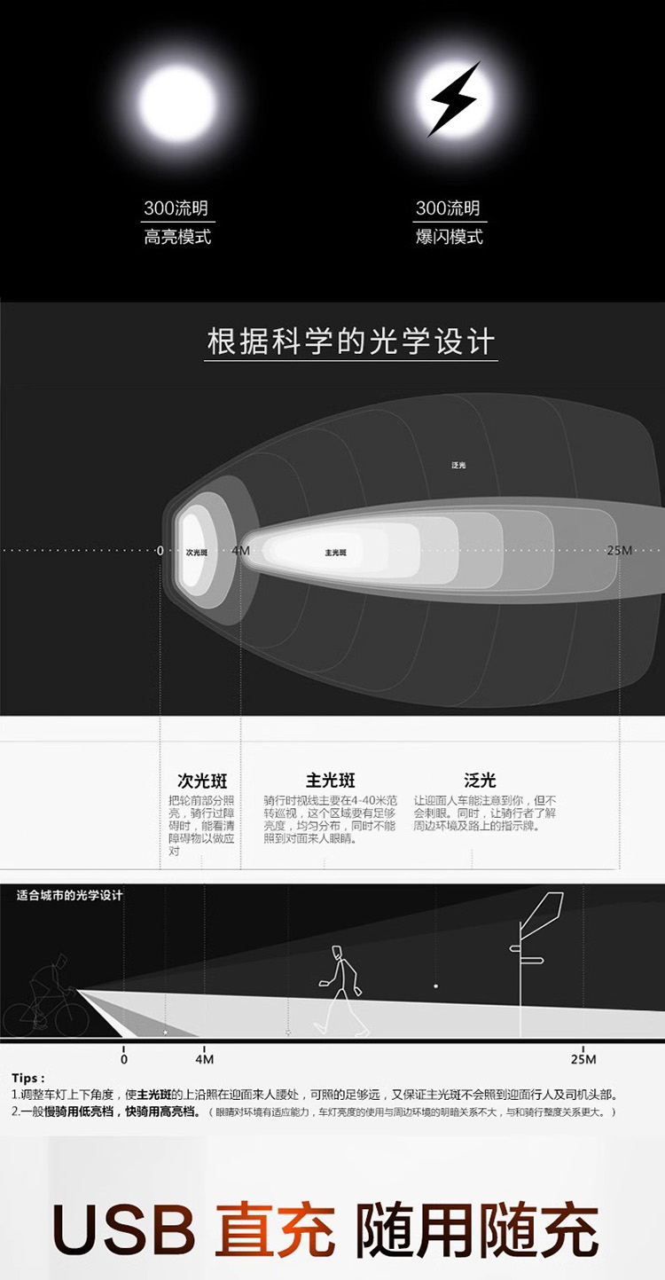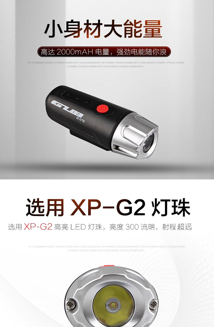 車前燈規(guī)格:XP-G2 LED燈珠,300流明,2000mAh鋰電池