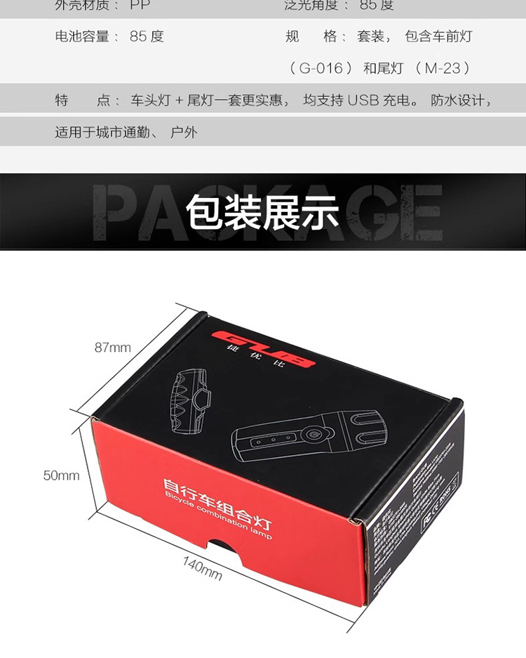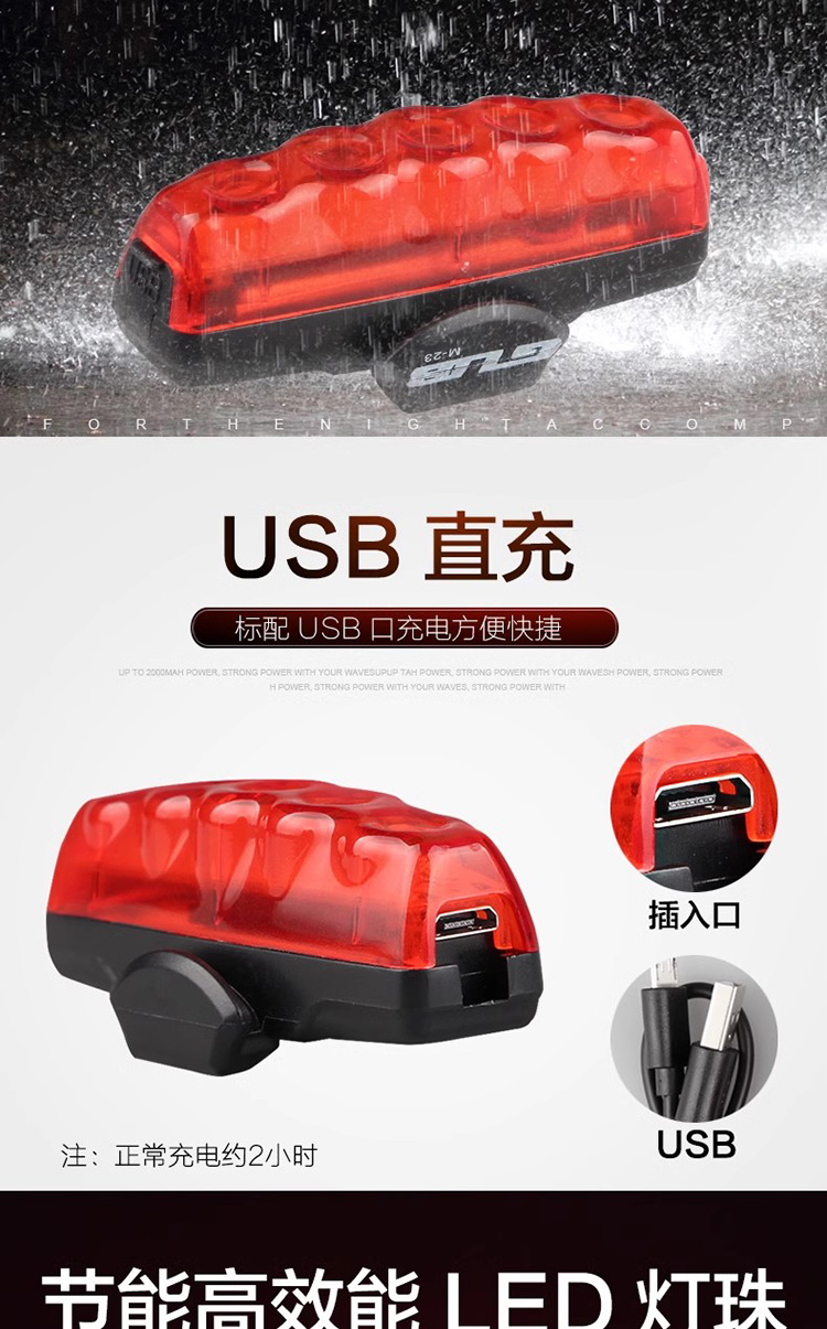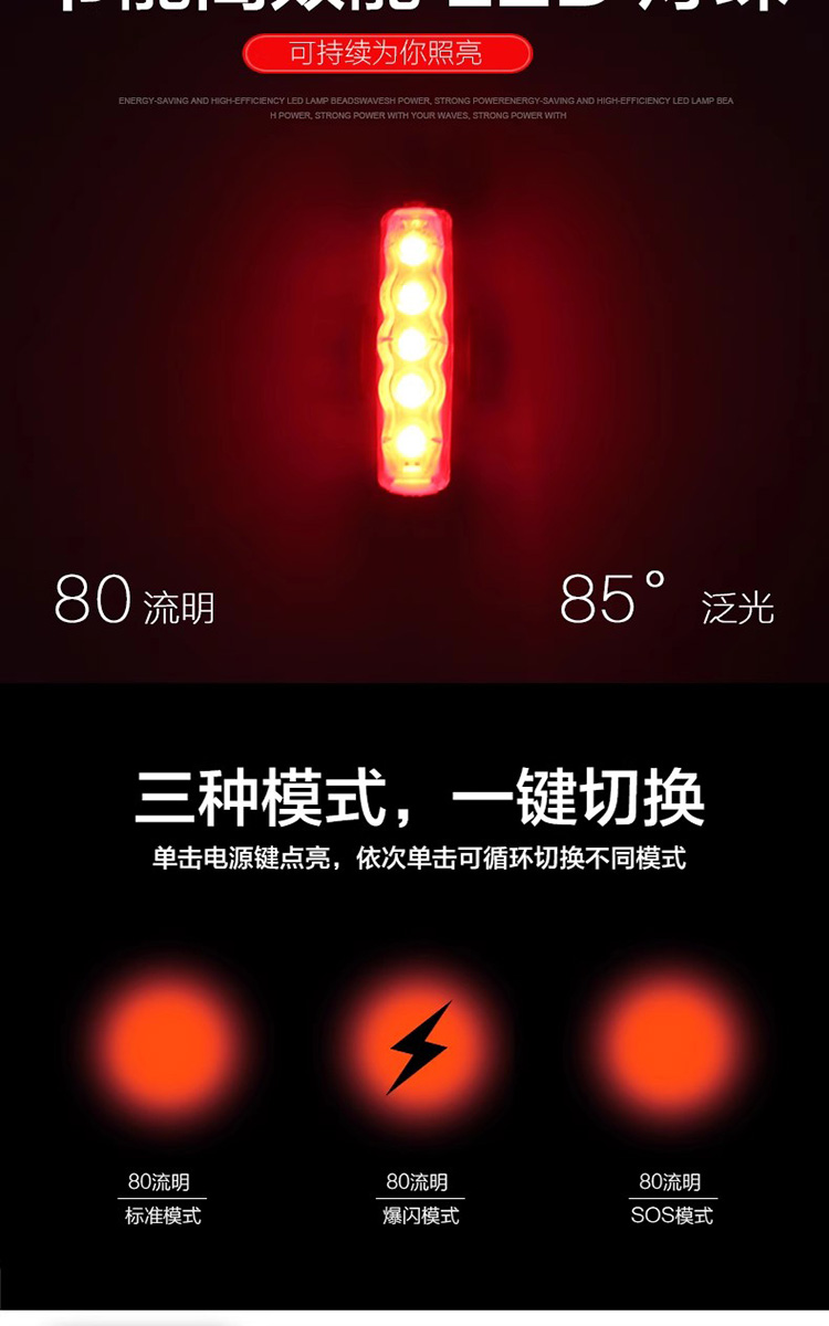 車尾燈規(guī)格:LED燈珠,80流明,300mAH電池