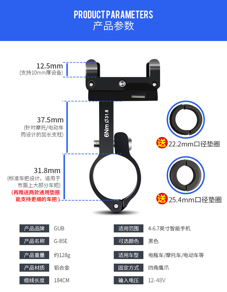 名稱:GUB G-85E 摩托車手機(jī)支架