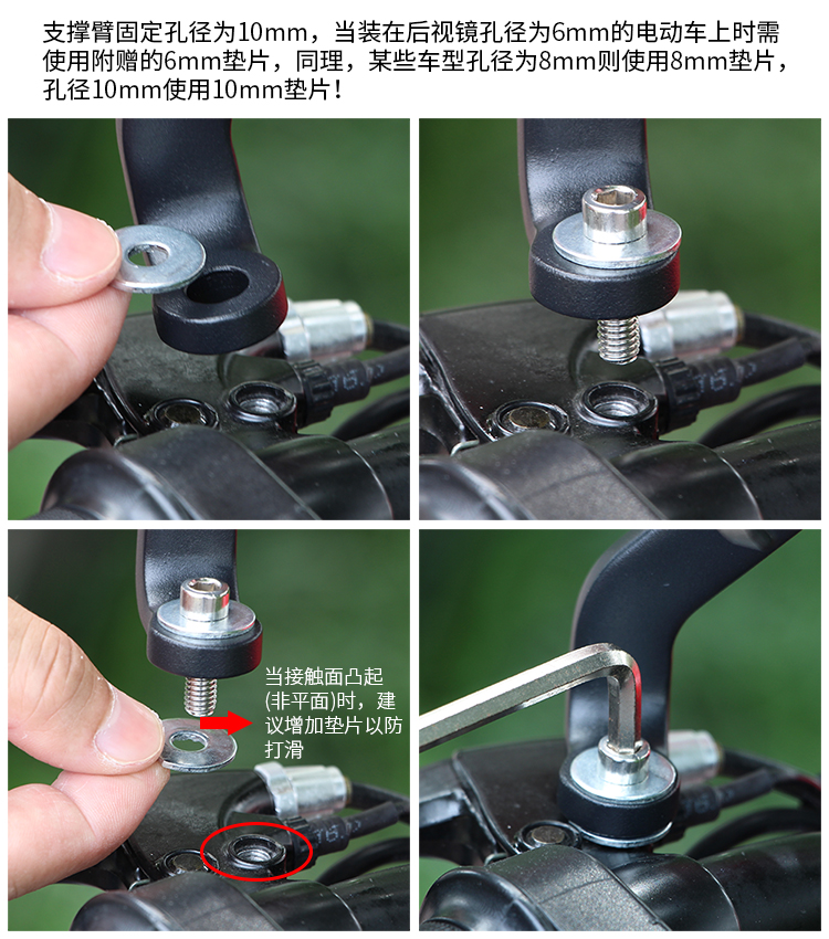規(guī)格:支持55-100mm寬的設備,適合后視鏡孔位直徑10mm