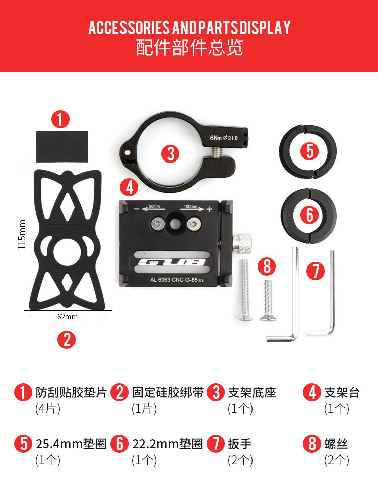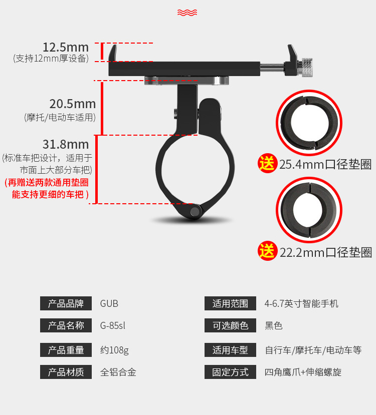 特色:G-85經(jīng)典升級(jí),浮雕LOGO工藝,新增硅膠綁片,全方位牢固手機(jī),讓您騎樂(lè)無(wú)窮!