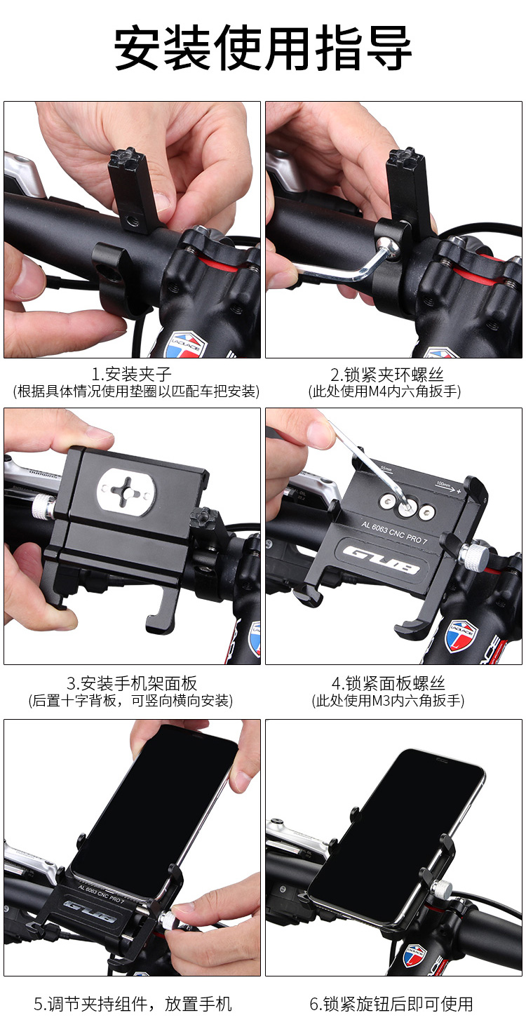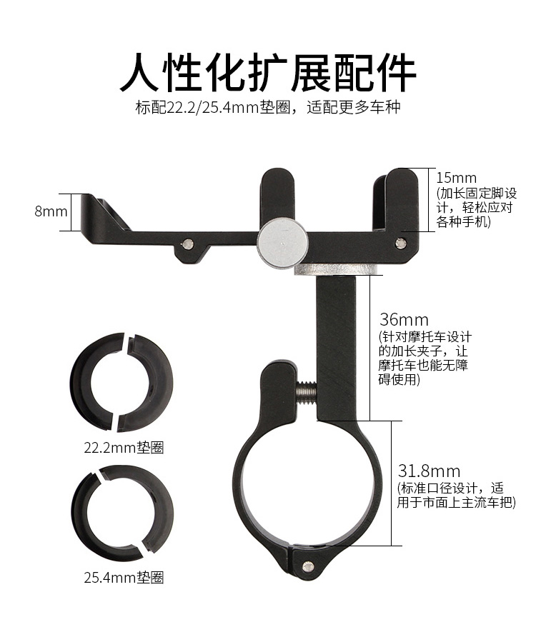 特點(diǎn):全鋁合金架體,精雕LOGO,四對(duì)位加長(zhǎng)固定部+強(qiáng)化底托,更標(biāo)配穩(wěn)固綁帶,高兼容性不挑手機(jī)型號(hào),自行車(chē)、電動(dòng)車(chē)等都可使用!