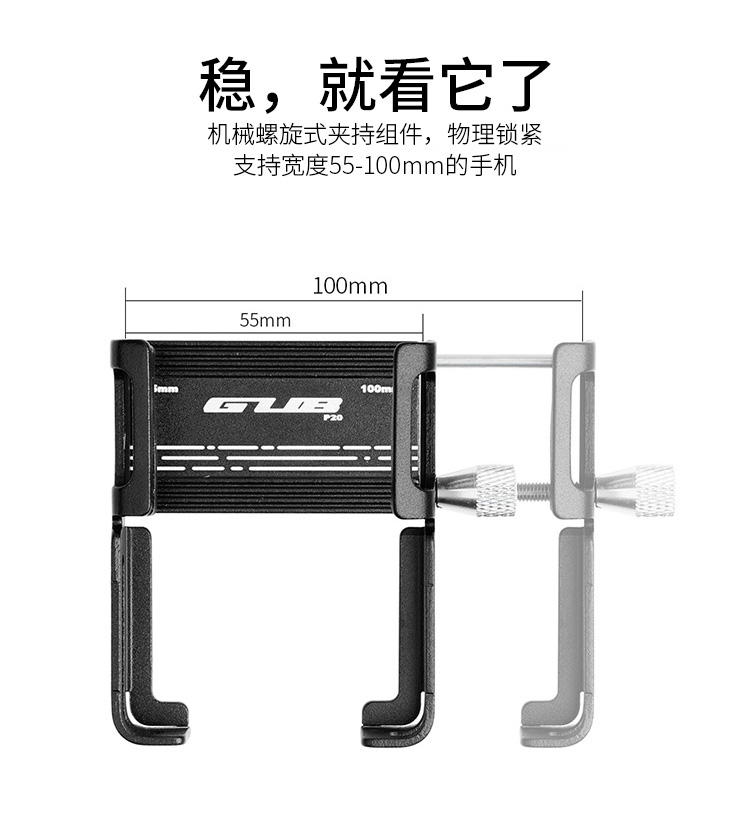 特點(diǎn):鋁合金架體+PC固定組件,55-100mm寬度的手機(jī)均可使用,萬向球+可旋轉(zhuǎn)夾口讓使用更加隨心所欲!