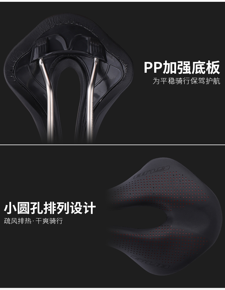 特色:超纖皮表面耐磨有質(zhì)感,鉻鉬鋼中空軌道強(qiáng)度高,小圓點(diǎn)排列設(shè)計(jì),疏風(fēng)排熱,加強(qiáng)PP底板,平穩(wěn)輸出,安心騎行!