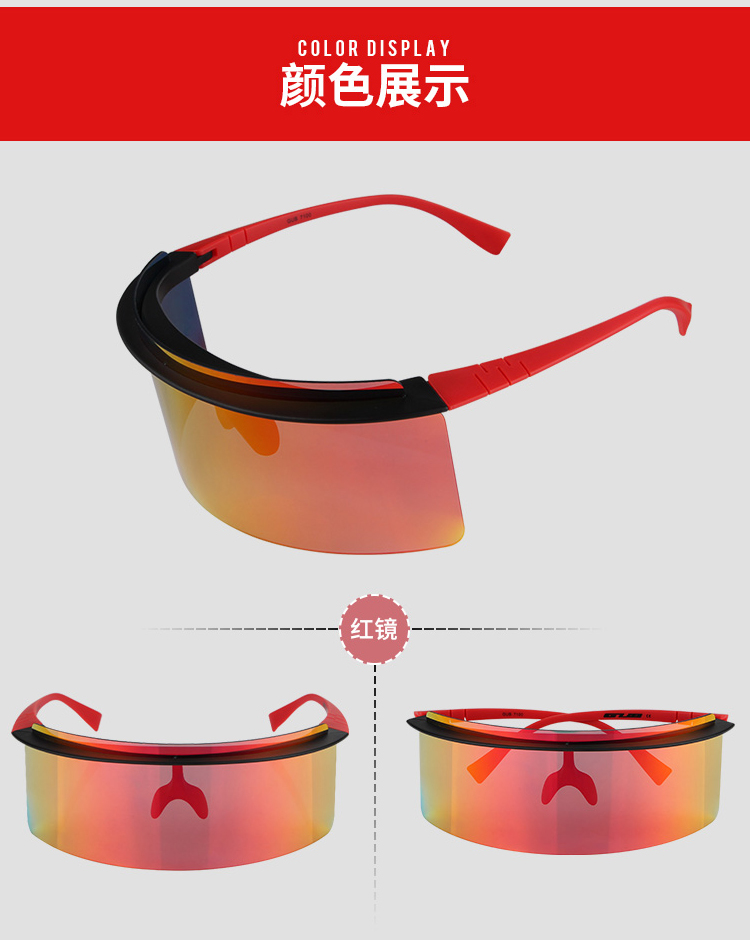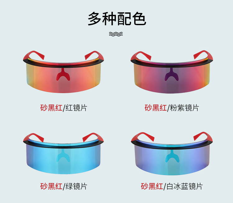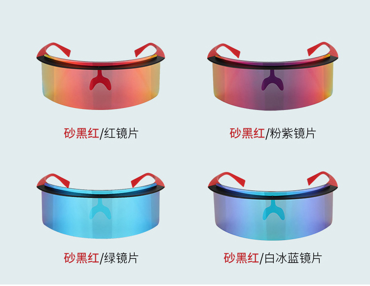 顏色:黑砂紅/紅鏡片、黑砂紅/白冰藍鏡片、黑砂紅/粉紫鏡片、黑砂紅/綠鏡片