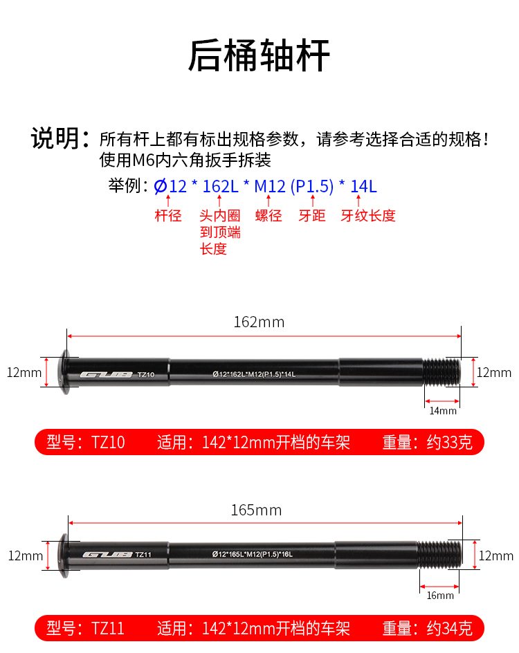說明:請根據(jù)前叉和車架尺寸選擇合適的桶軸桿!