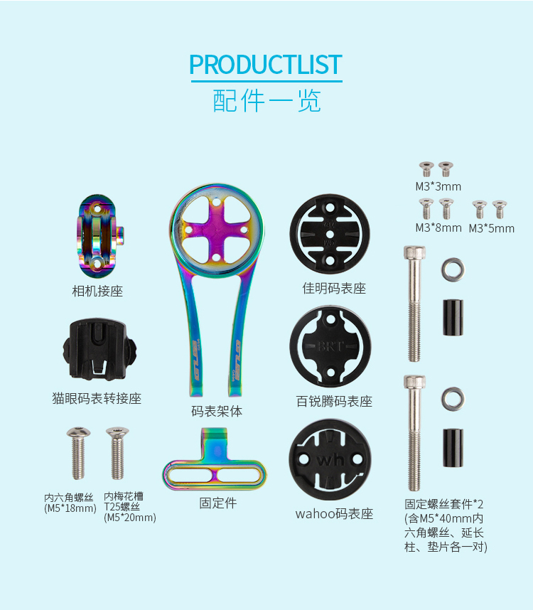 配置:配運動相機轉(zhuǎn)接座,wahoo、佳明、百銳騰和貓眼碼表接座