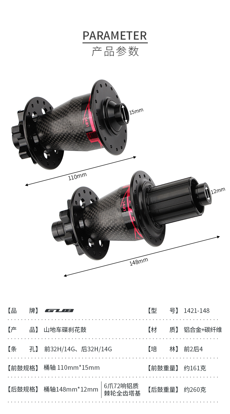 產(chǎn)品:GUB 1421-148 碳纖維桶軸碟剎花鼓