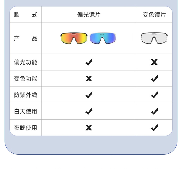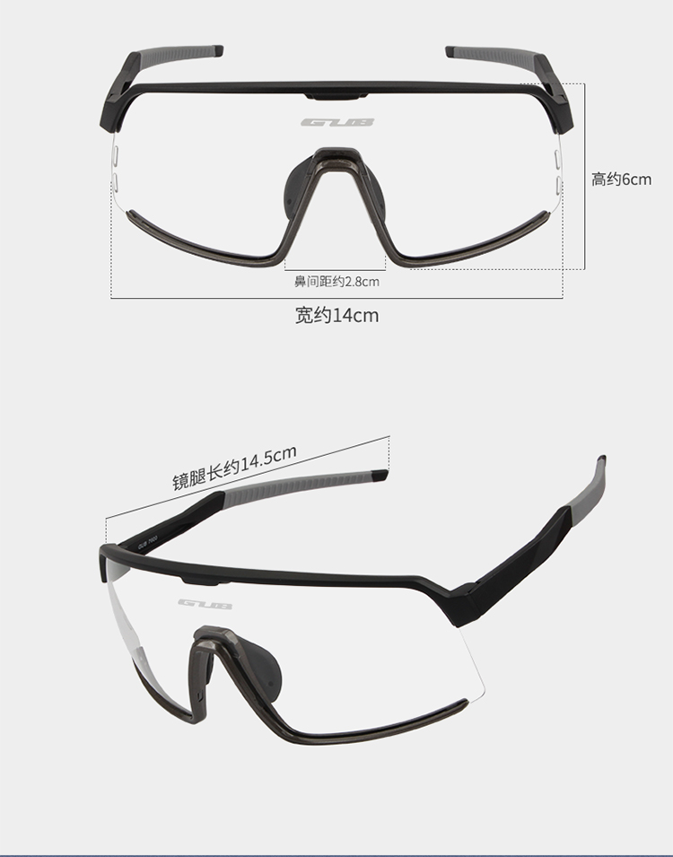 顏色:啞黑/透明變色+炫紅偏光、亮白/透明變色+白冰藍偏光