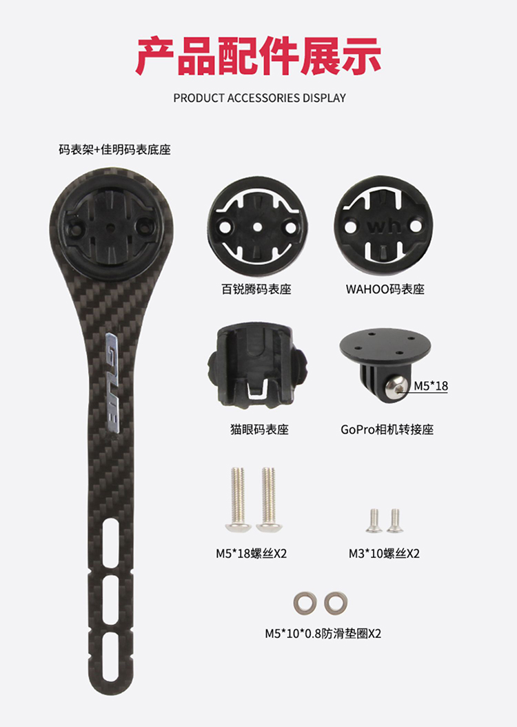配置:配運動相機轉(zhuǎn)接座,wahoo、佳明、百銳騰和貓眼碼表接座