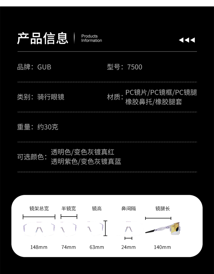 顏色:透明色/變色灰鍍真紅、透明紫/變色灰鍍真藍(lán)
