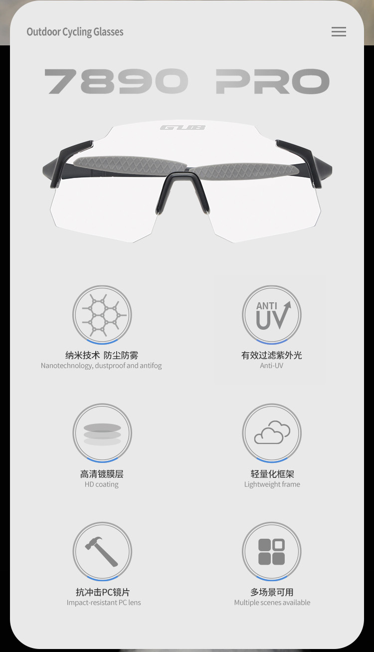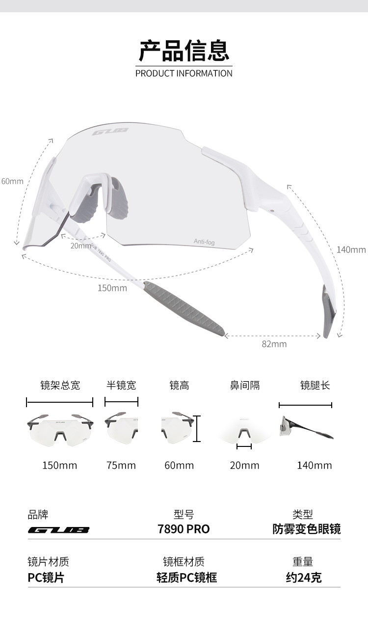 名稱:GUB 7890 PRO 防霧變色眼鏡