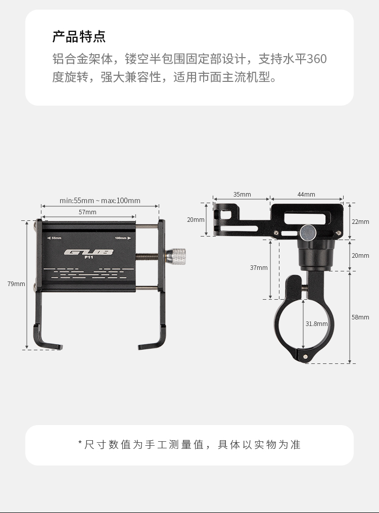 重量:約107克(單手機(jī)架)/約155克(毛重)
