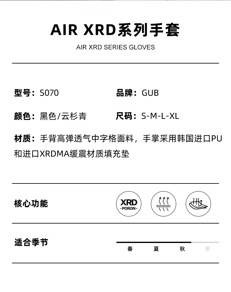 材質(zhì):手背高彈透氣中字格面料,手掌采用韓國(guó)進(jìn)口PU和進(jìn)口XRDMA緩震材質(zhì)填充墊