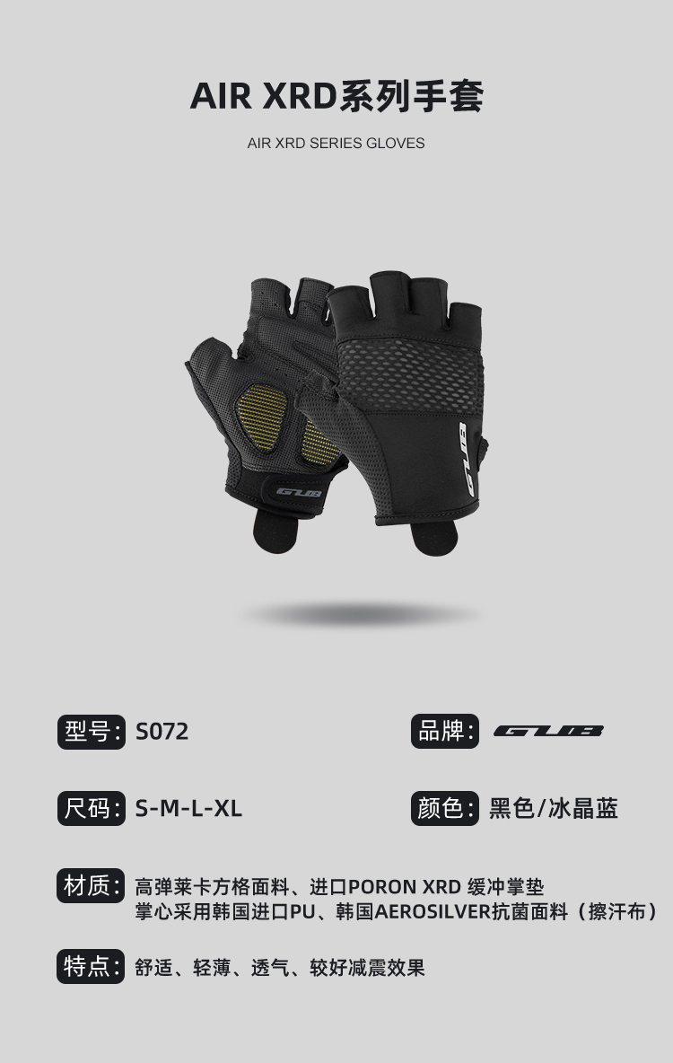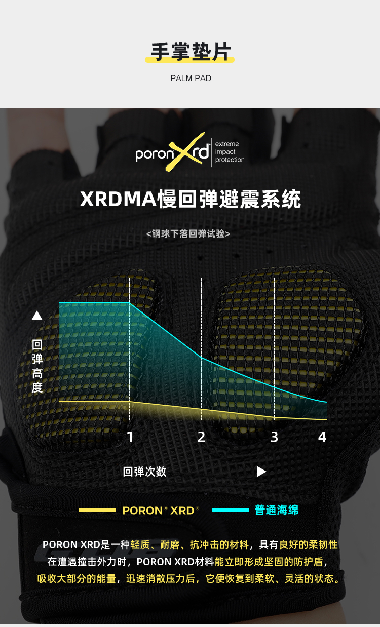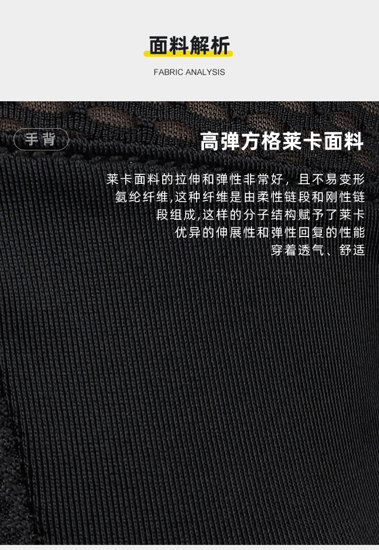 材質(zhì):高彈萊卡方格面料、進(jìn)口PORON XRD 緩沖掌墊、掌心采用韓國(guó)進(jìn)口PU、韓國(guó)Aerosilver抗菌面料(擦汗布)