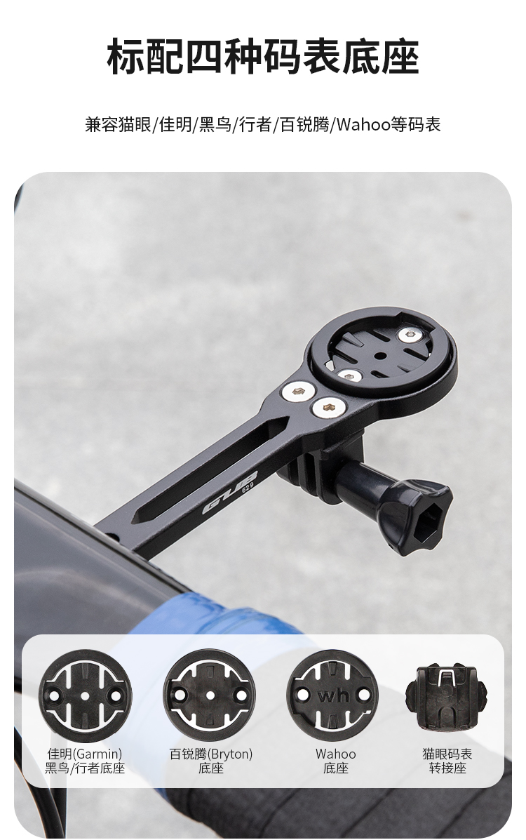 配置:配運(yùn)動(dòng)相機(jī)轉(zhuǎn)接座,wahoo、佳明、百銳騰和貓眼碼表接座